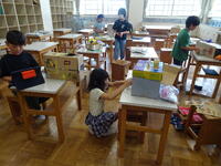 段ボールの箱に色を付けたり、形を変えたりしながら、素敵なボックスに変身させています。