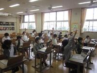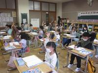1問ずつ確かめながら、ゆっくりと答えていく2年生です。ていねいな取り組みで、学習内容の定着を図ります。