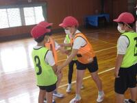 先日、運動場で行ったリレーを体育館でも実施しました。