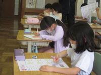 4年生は、漢字辞典の使い方について学習しました。総画数で調べたり、読み方で調べたりして、漢字辞典の使い方に親しみました。これからは、分からない漢字があったときに、自分で調べられるといいですね。