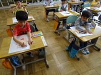 2年生が1年生で学んだ漢字のテストに挑戦していました。