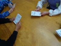 指定された文から始まり、指定された文で終わるように、グループで文章を作り上げる活動です。