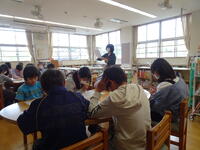 三島市立図書館から、ジンタ号が佐野小へやってきました。