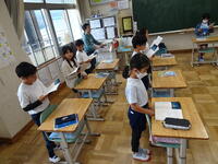 6年生は卒業アルバムに載せる文集を作る作業をしていました。個人ページの文章を考えています。タブレットを使って下書きを完成させていました。早く終わった子はドリルで漢字練習です。