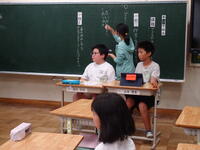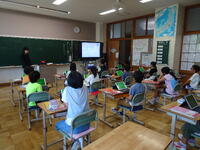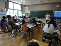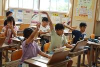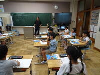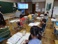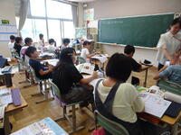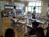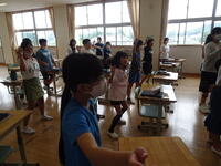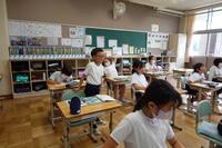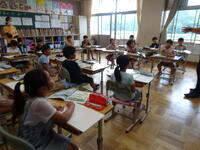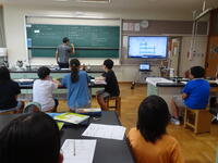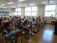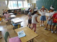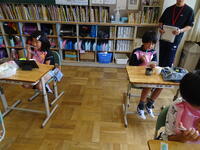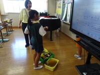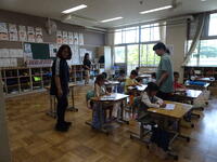リズムに合わせて体を動かして、チャンツを行いました。今日は、特任指導主事の参観もありました。