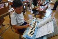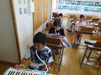 鍵盤ハーモニカの旋律に併せて、鈴やタンバリンでリズムを刻みました。