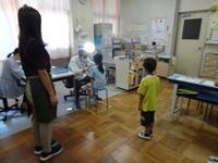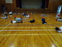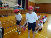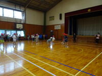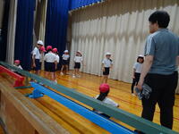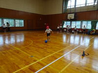 1年生はマット運動、2年生はボールを使った運動をしていました。