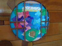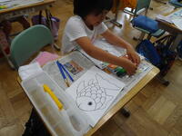 絵の具の練習です。様々な色を出し魚のうろこを塗っていきます。どんなお魚になるのか楽しみです。