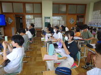 6年生は社会のテストについて解説を聞きながら、見直しを行いました。