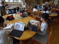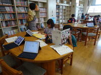 昔の道具について、図書室の本を資料に調べます。