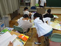 学習でできるようになったことや、夏休みに頑張りたいことなどをワークシートに書き込んでいます。