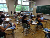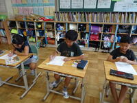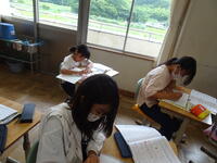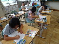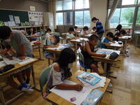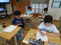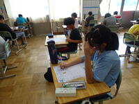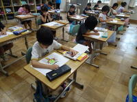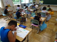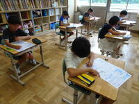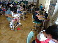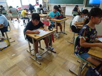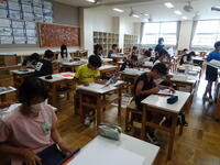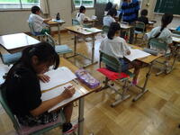 プールが終わった後、5年生は漢字のテストに挑戦です。
