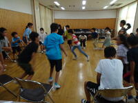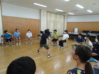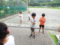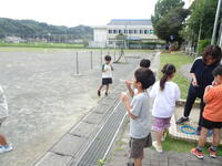 長縄の8の字跳びに挑戦しています。縄のタイミングに合わせて、上手に入っていきました。