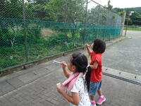 息を上手に吹き込んで、たくさんのシャボン玉を飛ばすことができました。