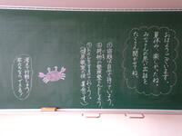 教室の黒板には、担任から夏休み明けの子供たちを迎えるメッセージが書かれていました。