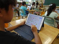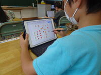 タブレットを使って、どのようにカードをまとめると分かりやすいか、考えながら動かしていました。