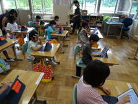 各教室では、夏休みに体験したことを話したり、絵日記を使って話をしたりしました。