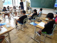 6年生は国語の「やまなし」の単元テストをに取り組んでいました。