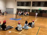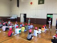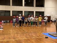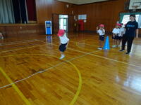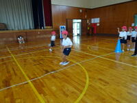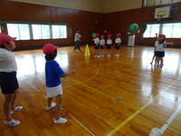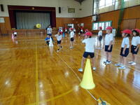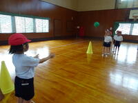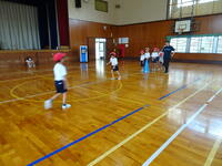 体力アップコンテストの種目、「みんなでドッジボールラリー」に挑戦していました。