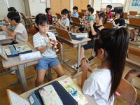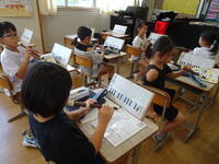 リコーダーの練習をしていました。友達と運指を確認しながらの練習です。