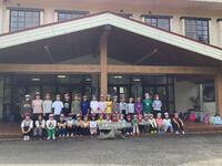 学校で開校式を行い、バスに乗り出発しました。楽しむのと同時に、友達との仲も深めてほしいと思います。