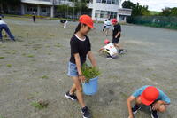 昼休みに児童会が主催して、運動場の草取りがおこなわれました。