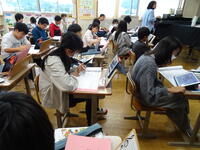 漢字テストに集中して取り組んでいます。とめ、はね、はらいに気を付けて丁寧に漢字を書いていました。