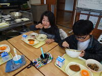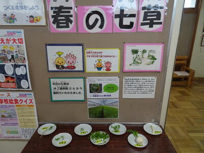 子供たちは給食で七草がゆを食べました。おいしそうに頬張っていました。