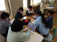 マット運動で、自分の磨きたい技を練習していました。タブレットで動画を撮影し、気を付ける部分を友達と話なら練習を進めていました。