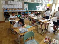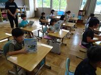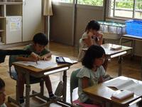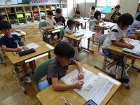 たし算とひき算の問題に挑戦していました。夏休み前に学習した内容が理解できているか確認していました。