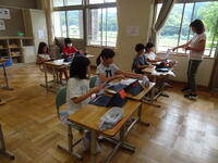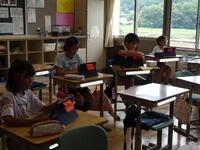 4・5年生が10月初旬に行われる自然教室に向けての係会を開いていました。