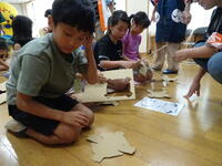 しゃぎりクイズに挑戦したり、段ボールですりがねづくりをしたりしました。