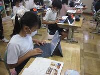 今日は、メダカが長く生きる条件やオス・メスの見分け方について調べ学習をしました。タブレット端末を使い、調べていきました。