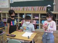 今日は、1年生が卒園した幼稚園や保育園・こども園などの先生方をお招きし、1年生の成長したようすを見ていただきました。