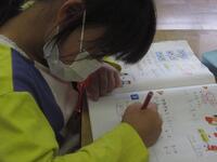 「拝啓」から書き始める手紙。時候の挨拶とともに、初めて書く表現に少し緊張気味の子どもたちでした。