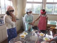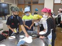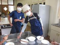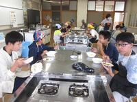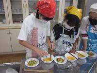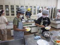 完成した班から、野菜炒めとスクランブルエッグをいただきます。