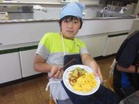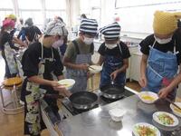 子どもたちは、手順を確認した後、早速調理を始めました。野菜をさっと炒め、塩こしょうで味付けをしました。家でも手伝いをすることが多いと言っていた6年生です。菜箸やフライパンも使い慣れているようでした。