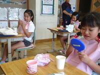 絵本の読み聞かせや、野菜や果物の断面が載っている絵本を使ったクイズなど、おもしろい企画を考えてきてくださいました。ありがとうございました。