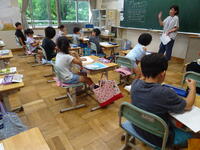 リズムに合わせて体を動かして、チャンツを行いました。今日は、特任指導主事の参観もありました。