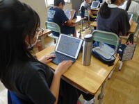 作文の構成をタブレットを使って考えています。自分の考えを書いたり消したりすることが、タブレットでは簡単にできるので、アイデアを書き出すにはもってこいですね。