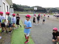 ドッジボールの形で、当たった子は当てた子のチームに入ります。頻繁にチーム移動が行われ、楽しそうに体を動かしていました。