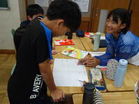 新しい漢字を習っています。縦画、横画の書き順に気を付けながらドリルに書き込んで行きます。