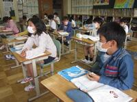 あと1、2分で授業が始まるという時間に5年生の教室へ行くと、すでに教科書を見ている子どもたち。