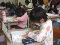 デジタル教材で筆順を確認した後、ドリルに記載していきます。ドリルだけで練習するときよりも、みんな張り切って取り組んでいました。