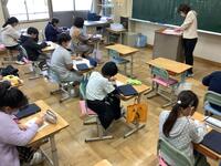 2年生が1年生で学んだ漢字のテストに挑戦していました。
