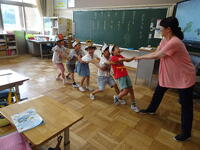 ねずみ役の子がそろうと・・・おおきなかぶは抜けました。