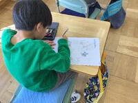 1年生はえんぴつの持ち方から始めています。今日は名前を書くことと、運筆の練習をしました。