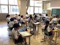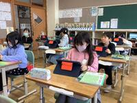 国語では、タブレットを使って、自分の考えをまとめて書いていました。