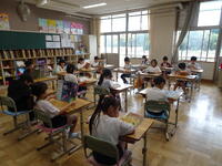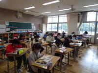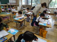 2年生が1年生で学んだ漢字のテストに挑戦していました。