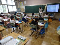ALTの先生の自己紹介をクイズにして、子供たちと盛り上がっていました。